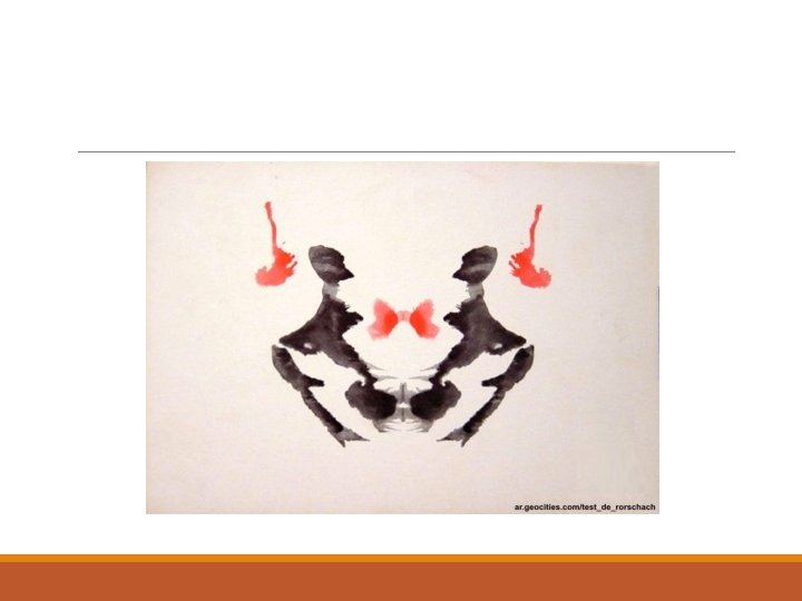 Rorschah test 10 tabli sa simetričnim mrljama na beloj osnovi Univerzalna instrukcija: “Šta ovo može da bude? ” Razrađen sistem kriterijuma za ocenjivanje odgovora: ◦ Opažanje celine, delova, međuprostora ◦ Opažanje forme, boja, pokreta, dubine ◦ Učestalost odgovora: popularni ili originalni odgovori ◦ Govorno izražavanje: logičnost izlaganja, gramatika, stil