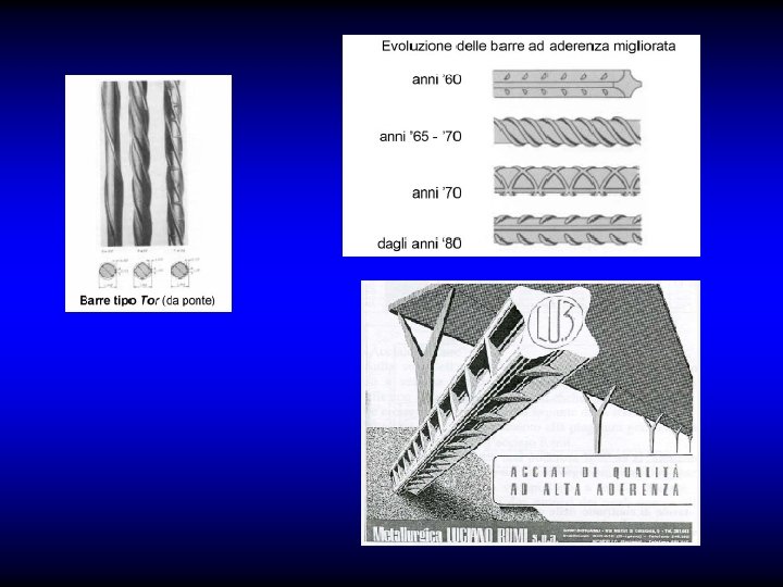 PROVE DI QUALIFICAZIONE DEI MATERIALI IN OPERA Acciaio Relativamente alle barre di armatura, la cosa più importante è rilevarne la quantità e la posizione. Si possono fare rilievi con pacometro e in alcuni punti rilievi a vista e misure dei diametri, previa asportazione del copriferro. Relativamente alla qualità degli acciai, una volta riconosciuta la forma delle barre, di solito si fa riferimento alla manualistica dell'epoca di costruzione per quanto riguarda le caratteristiche di resistenza. In casi molto limitati, si ricorre al prelievo di campioni di armatura, su cui possono essere eseguite prove di trazione, in analogia a quelli nuovi.