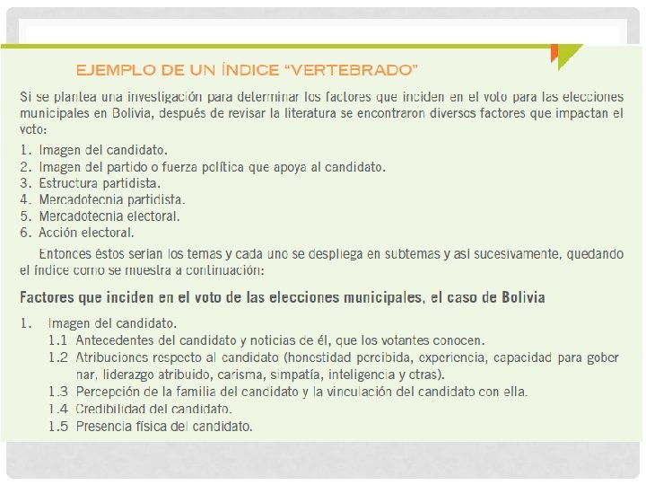 Proceso de vertebración del índice del marco teórico y ubicación de referencias.