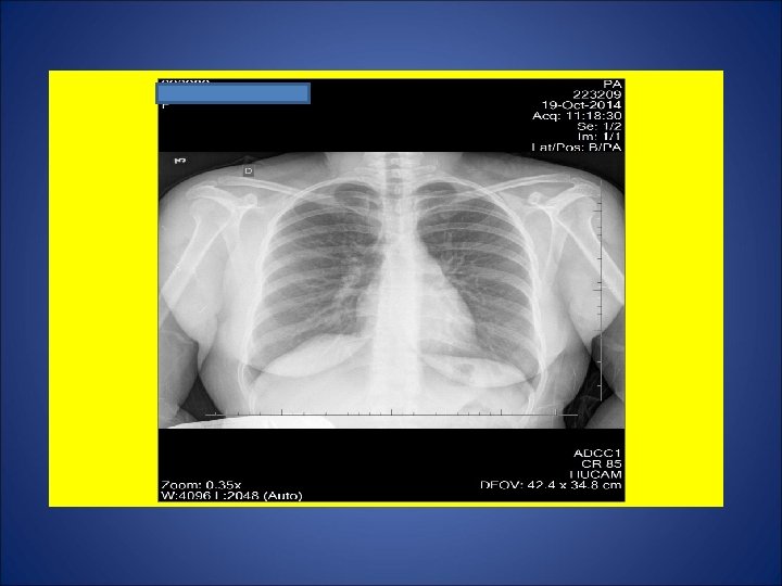 CASO 2, feminina, 37 anos de idade, auxiliar de serviços gerais, natural de Governador Valadares, residente em Cariacica (ES). Por volta de 04 Out 14, procurou P. A. devido a tosse não produtiva, febre, sudorese, calafrios, cefaléia e diarréia há 2 semanas. Foram prescritos algumas medicações (incluido antimicrobiano). Relatou perda de 4 Kg e hiporexia durante as últimas 3 semanas. Remissão da febre, sudorese e calafrios há 1 semana. Em 11 Out, procurou de novo o P. A. devido à ausência de melhora clínica. Foi internada devido ao diagnóstico de derrame pleural à direita, sendo iniciados ceftriaxone 2 g/dia e oxacilina 1 g E. V. 4/4 h. Em 15 out, foi transferida para a enfermaria de Pneumologia do Hospital Universitário para propedêutica de derrame pleural. Negou Tuberculose prévia. Contato intra-domiciliar (mesma cômodo e mesma cama) durante os últimos 14 anos com seu marido em tratamento para tuberculose pulmonar (5º mês). Tabagista e etilista. Dependência química prévia por 1 ano (maconha, cocaína e crack). HIV negativa. Ex. físico: Estado geral regular, P=61 Kg, Alt=1, 68 m, IMC= 21, 6 Kg/m 2. Propedêutica respiratória compatível com derrame pleural.