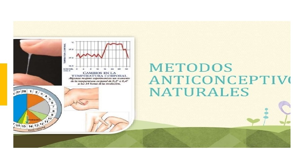 • MÉTODO DE LA TEMPERATURA BASAL CORPORAL: LA MUJER DEBE REGISTRAR SU TEMPERATURA CORPORAL A LA MISMA HORA TODAS LAS MAÑANAS ANTES DE LEVANTARSE, PRESTANDO ATENCIÓN A QUE SE PRODUZCA UN AUMENTO DE ENTRE 0, 2 ºC A 0, 5 ºC. METODO DE LA TEMPERAURA BASAL CORPORAL • ESTE MÉTODO IMPIDE EL EMBARAZO SI SE EVITA EL COITO SIN PROTECCIÓN DURANTE LOS DÍAS FÉRTILES. TIENE UN 99% DE EFECTIVIDAD SI SE USA DE MANERA CORRECTA Y SOSTENIDA. CUANDO AUMENTA LA TEMPERATURA BASAL Y SE MANTIENE ALTA DURANTE TRES DÍAS ENTEROS, SE HA PRODUCIDO LA OVULACIÓN Y EL PERÍODO FÉRTIL HA PASADO. LAS RELACIONES SEXUALES PUEDEN REANUDARSE EL CUARTO DÍA HASTA LA SIGUIENTE MENSTRUACIÓN MENSUAL, EXPLICA LA OMS.