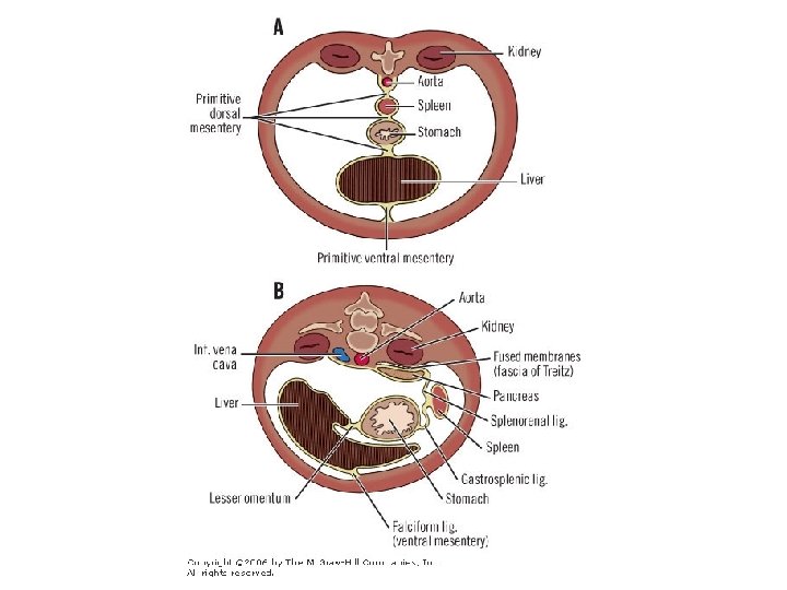 Embriyoloji • Mezenter, ön-orta-arka barsağı arka karın duvarına bağlayan mezenkimal doku