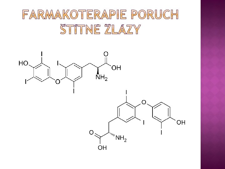 � levotyroxin � počáteční titrace dávky, plný účinek do měsíce � důležité kontroly a úpravy dávky � užití NALAČNO � v graviditě navýšit dávku o 25 -80% � NÚ: tachykardie, anginózní bolesti, arytmie – z nevhodné dávky � liotyronin � nevhodný dlouhodobě � obtížná titrace dávky – často hypertyteóza � I: akutní stavy – hypotyreózní kóma