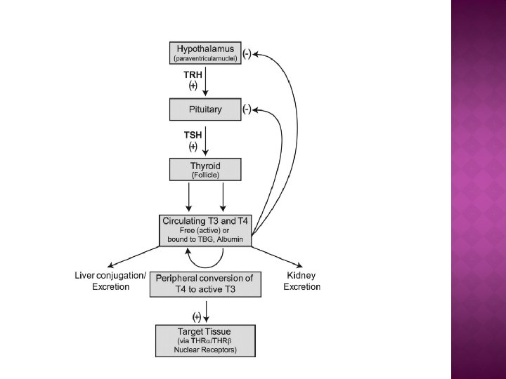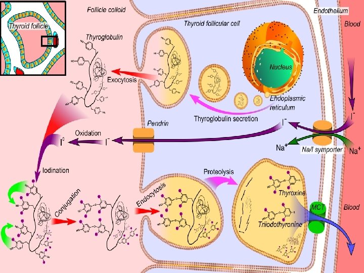 � tyreocyty �příjem a zpracování I�syntéza a exkrece hormonů �trijodtyronin – T 3, tyroxin – T 4 � koloid �depozice hormonů � funkce: �vývoj plodu �tělesný růst a vývoj �stimulace metabolizmu �termogeneze