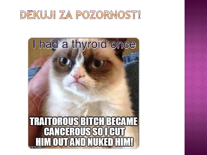 β-zářič – krátký dosah, destrukce folikulů � p. o. podání, poločas rozpadu je 8 dní � KI do 35 let � I: nádory žlázy, G-B nemoc, diagnostické účely � obvykle kombinace s chirurgickou metodou a thyreostatickou léčbou � NÚ: hypotyreóza – nutná substituce �
