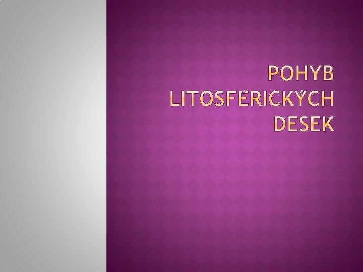 Mgr. Rudolf Jánošík Autor Číslo materiálu Datum vytvoření Druh učebního materiálu 1_2_ZMP_2 1. 9. 2013 Prezentace k výkladu Ročník 1. Ročník Anotace Fyzická geografie – litosféra – pohyb litosférických desek Klíčová slova Subdukce, oddalování a transformní rozhraní Vzdělávací oblast Člověk a příroda – zeměpis Očekávaný výstup Žák se seznámí se základními pohyby litosférických desek. Zdroje a citace BIČÍK, Ivan BIČÍK a Bohumír JANSKÝ. <i>Příroda a lidé Země: učebnice zeměpisu pro střední školy</i>. 2. , upr. vyd. Praha: Nakladatelství České geografické společnosti, 2007, 135 s. ISBN 978 -808 -6034 -737. KAŠPAROVSKÝ, Karel. <i>Zeměpis I. v kostce: pro střední školy : [úvod do geografie, kartografie, fyzická geografie, socioekonomická geografie]</i>. 2. vyd. , 1. dotisk. Praha: Fragment, 2006. ISBN 978 -802 -5300 -299.