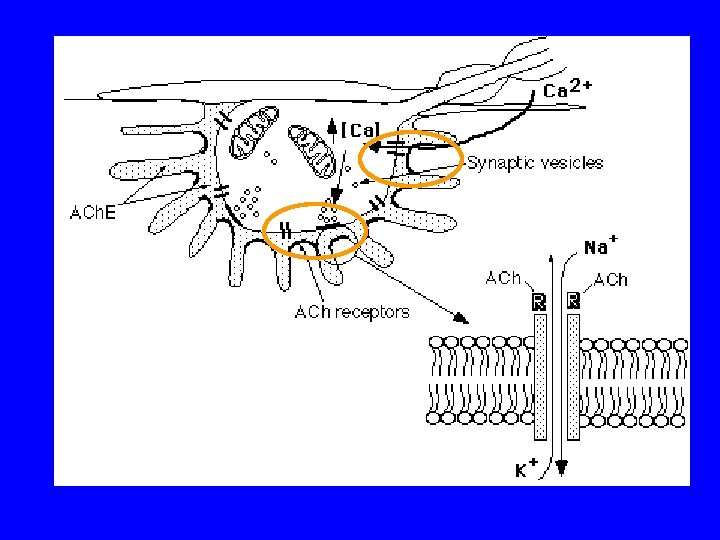 • Mięsień niedojrzały: ACh. R (płodowy) równomiernie rozłożony wzdłuż błony mięśniowej z gęstością 1000/mm 2 (Bevan, Steinbach 1977) • dojrzała synapsa: gęstość ACh. R >10 000 /mm 2, ok. 10/mm 2 poza synapsą (Merlie, Sanes 1985)