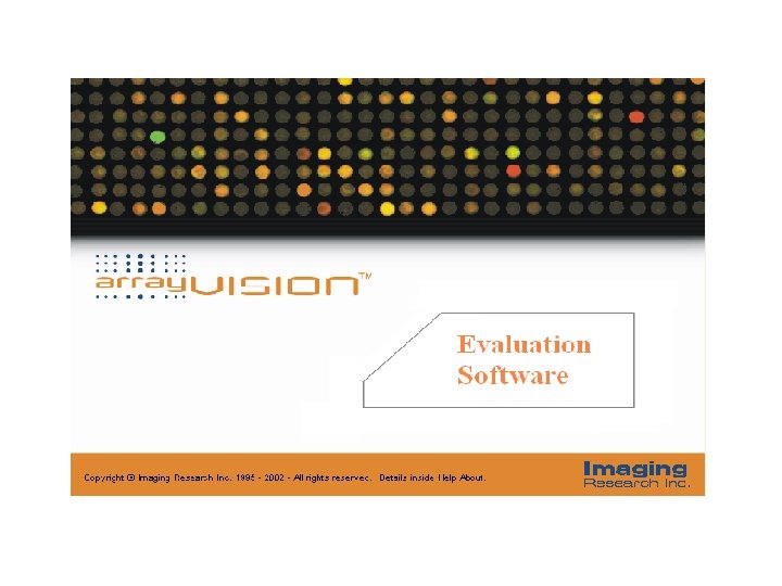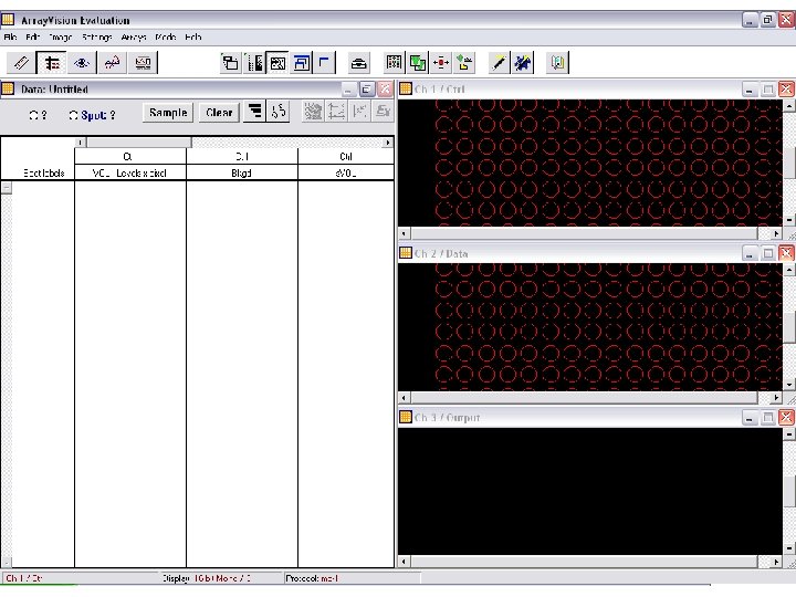 Classes of software 1. Array experiment image analysis I. III. IV. V. VI. Load image (. SCN , TIFF , others) Select channels Select parameter Normalization Gridding Reading 2. Statistical analysis of raw data ? ? 3. Discovery tools (you name it)