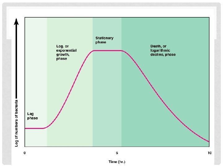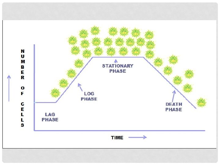 DOUBLING TIME (GENERATION TIME) • The time taken by a bacteria to double in number. • It varies greatly according to : ü ü Type of organism Temperature Nutrients Other conditions. • 10 cells of a food-borne pathogen in a potato salad, sitting for 4 hours in the warm sun at a picnic, may multiply to more than 40, 000 cells. N 1 = N 0 X 2 n N 1 number of bacterial cells at a given time. N 0 original number of cells in a population. n number of divisions those cells have undergone during that time.