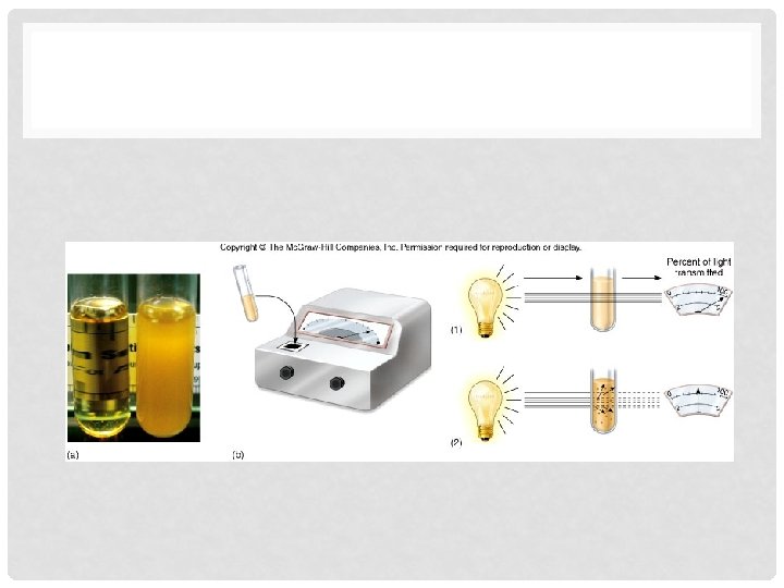 METHODS OF MEASURING BACTERIAL GROWTH • Measuring Biomass: ü Turbidity: needs one-time correlation with plate counts to use turbidity for determining cell number.