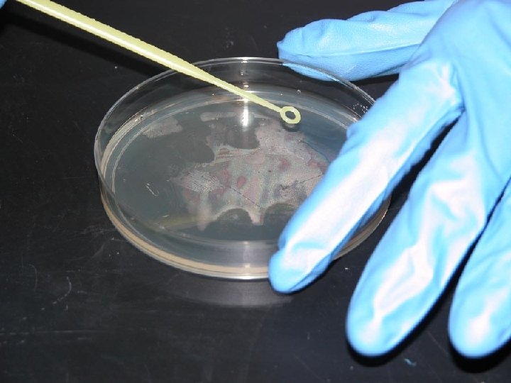 Inoculating Petri Plates Step 4: Holding the petri dish lid at an 30 -45° angle, work the inoculating loop from the outside of the plate toward the center in a zig-zag pattern that covers approximately 25% of the plate surface (think pie or pizza slice!).
