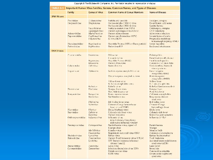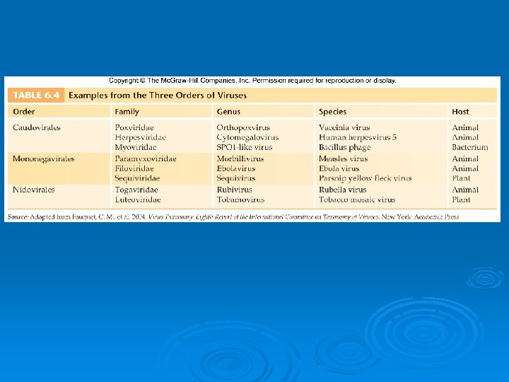 6. 4 How Viruses are Classified and Named Ø Main criteria l l l Structure Chemical composition Similarities in genetic makeup Ø International Committee on the Taxonomy of Viruses, 2000 l l l 3 orders 63 famillies “-viridae” 263 genera “-virus” Ø Some virologists use a species naming system, but it is not an official designation