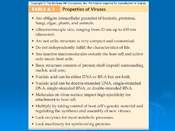 6. 2 The Position of Viruses in the Biological Spectrum Ø Ø Ø Can infect every type of cell Cannot exist independently from the host cell, so aren’t considered living things However, since they can direct life processes they are often considered more than lifeless molecules Referred to as infectious particles, either active or inactive Obligate intracellular parasites Cannot multiply unless they invade a specific host cell and instruct its genetic and metabolic machinery to make and release new viruses