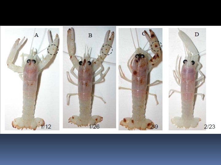 A ‘homaria’ in other arthropods Species Lesions Healthy Carapace Lobster 17 20 Spider Crab 10 8 Green Crab 7 3 Jonah Crab 9 8 Horseshoe Crab 4 3