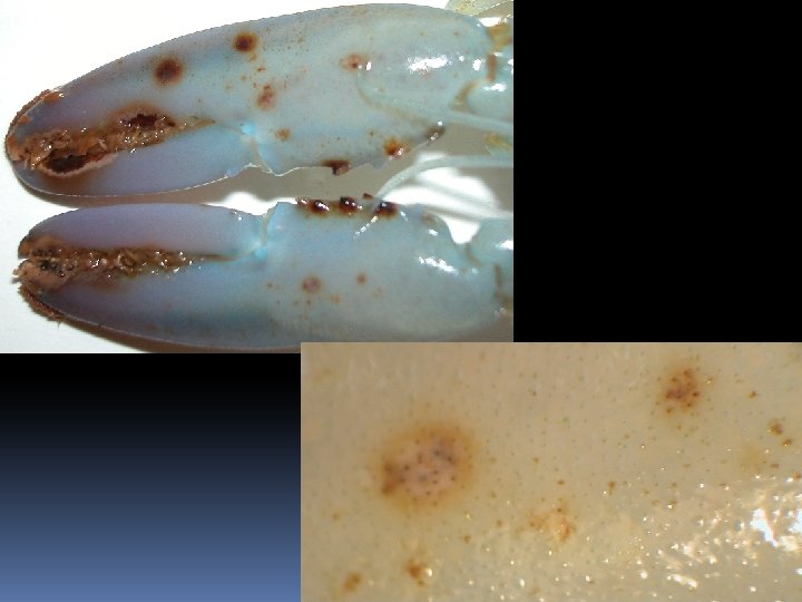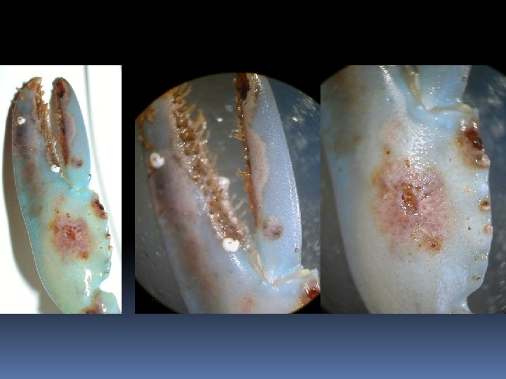 Can we intentionally create infections? • Bacteria onto filters - attach to lobsters – Aquimarina ‘homaria’ (R / L side) – -proteobacterium (R side) Marinosulfonomonas methylotropha – Pseudoalteromonas gracilis (R side)
