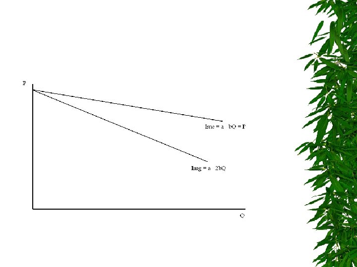 Siendo el ingreso total a. Q - b. Q 2 la primera derivada respecto a Q da a - 2 b. Q lo que el IMg tiene la doble pendiente del IMe para una b distinta a cero. Gráficamente las funciones se expresan como: