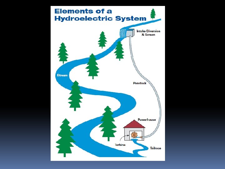 Basic Components of the System Diversion/intake Pipeline/penstock Powerhouse Turbine Tailrace