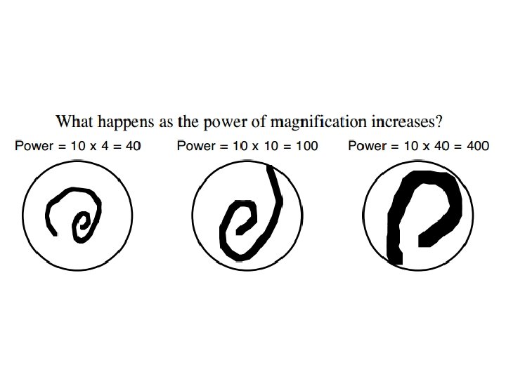 Parts of the Microscope • Stage Clips: clips that hold your slide in place • Objectives: Usually you will find 3 or 4 objective lenses on a microscope. They almost always consist of 4 X, 10 X, 40 X and 100 X powers.