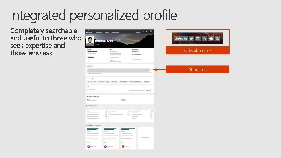 i. Connect Homepage Share. Point Online + Yammer as one solution • Real-time, Machine-based translation & Direct links to Outlook online • Customizable Personal Toolset • Collaboration feed, powered by Yammer • Detailed Mega. Menu • Company news and employee interest stories