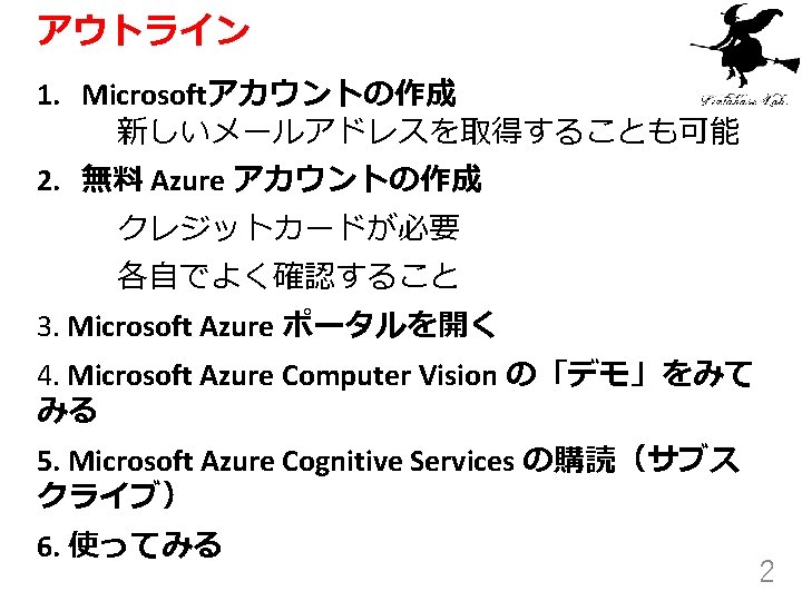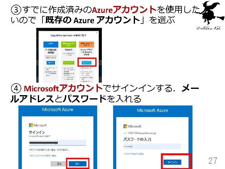 ① Web ブラウザで,Microsoft Azure Computer Vision の Web ページを開く https: //azure. microsoft. com/ja-jp/services/cognitive -services/computer-vision/ ② 「Computer Vision API を試す」をクリック 26