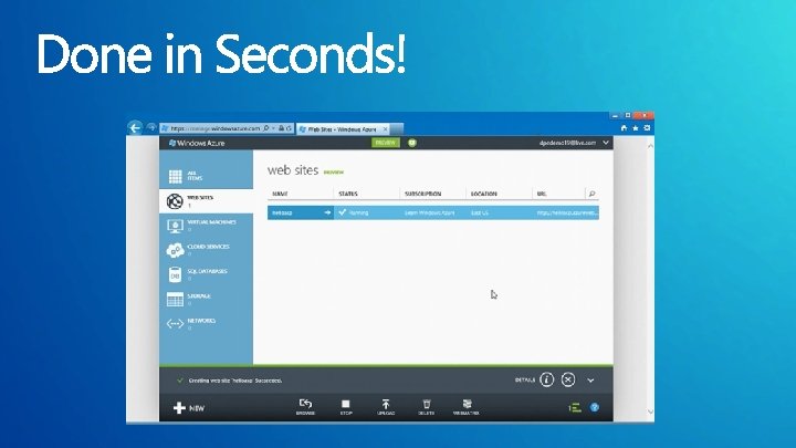 >57% >250 k 1, 000 >20 >2 >1 Fortune 500 using Azure TRILLION storage objects MILLION requests/sec Active websites >300 >13 MILLION AD users BILLION authentication/wk Greater than SQL Databases in Azure MILLION Developers registered with Visual Studio Online