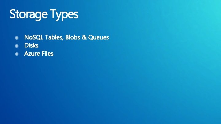Queues Simple message queue Not transactional Read at least once Delete to remove message, otherwise is returned to queue Partitioned by Queue Name