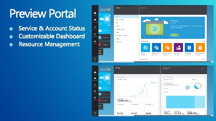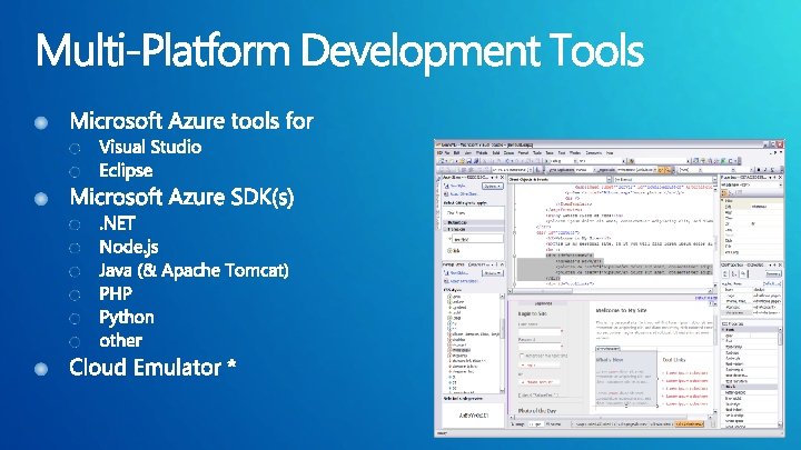 • Microsoft Azure 30 -day free trial • Small amt of free usage • Credit card required, but you will not be charged • MSDN Premium & Ultimate automatically get • Moderate amount of free usage each month • Credit card required for fraud protection (No charges) • Have to sign up for it (Wasted if you don’t ) • Biz. Spark also gets it via included MSDN Premium