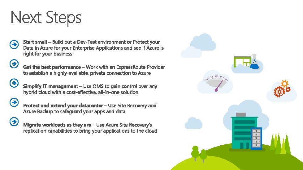 Hyper scale Infrastructure is the enabler 100+ Datacenters across 30 Regions (22 Generally Available) Worldwide North Central US Illinois Central US Iowa US Do. D West TBD Canada Central Toronto Canada East Quebec City United Kingdom Regions Germany North East ** Magdeburg US Gov Iowa West US California South Central US Texas North Europe Ireland East US Virginia US Gov Virginia West Europe Netherlands China North * Beijing Germany Central ** Frankfurt Japan East Tokyo, Saitama China South * Shanghai Japan West Osaka India Central Pune East US 2 Virginia India West Mumbai US Do. D East TBD India South Chennai East Asia Hong Kong SE Asia Singapore Australia East New South Wales Brazil South Sao Paulo State Top 3 networks in the world 2. 5 x AWS, 7 x Google DC Regions G Series – Largest VM in World, 32 cores, 448 GB Ram, SSD… Australia South East Victoria Operational Announced/Not Operational * Operated by 21 Vianet ** Data Stewardship by Deutsche Telekom
