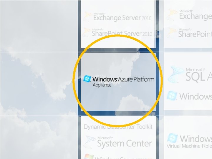 Software /su pp ort anne ll / Ch Rese Help others move to the cloud story Ma l HOSTED ure ON PREMISES of Az Enable others do their own cloud p on to Infrastructure Build Offer Private Cloud int ain Platform PUBLIC
