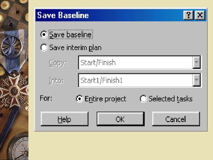 A linha de base é uma base para comparação. Caso você salve o projeto com uma linha de base, as informações iniciais de tempo, recursos e custos serão armazenadas em campos especiais, de modo a possibilitar futuras comparações do tipo previsto/realizado quando o projeto estiver em andamento ou sofrer alterações. Após fazer a sua escolha, clique no botão OK.