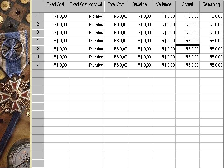 Um Exemplo de Custo Fixo Vamos acrescentar ao nosso projeto exemplo informações de custo, como mostra a tabela a seguir: