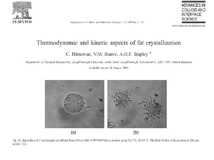 Structure Levels in Fat Crystal • Primary crystalization – Thermodynamic driving force, nucleation, crystal growth, polymorphism • Microstructural development • Macroscopic properties
