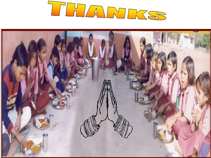 Details of mid day meal kitchen cum stores in M. P • Major component of Mid Day Meal is to construct kitchen-cum-store in school to ensure safety and security of food grains as well as to ensure that food is cooked in a hygienic way. • Govt of M. P. is thankful to Govt of India to provide funds Rs 598. 33 crores for construction of 98462 no. of kitchen sheds in 2006 – 2013. • Out of which, Govt. of M. P. has constructed 82743 kitchen cum stores in M. P. , 10058 are under progress and 4298 have not yet started.