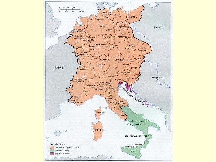 THE RISE OF KINGDOMS AND THE GROWTH OF CHURCH POWER C. Christian Reconquest: The Spanish Kingdoms 1. The Reconquest-11 th c. small Christian kingdoms in the north began to re-conquer land from the Moors (15 th c. ) D. The Lands of the Holy Roman Empire: Germany and Italy—used control of the church to unify, however, backfired under Henry IV 1. Involvement in Italy (no central political authority); tried to control and exploit areas 2. Frederick I (Hohenstaufen) (aka Barbarossa)—attempt to conquer northern Italian cities and ignored strengthening the German states; later made a financial deal and through marriage increased power over Rome (Holy Roman Empire) 3. Frederick II (HRE)-concentrated on consolidating Italian power and left German princes to rule selves (they chose an ineffective ruler – Habsburg); consolidation of either Italy or Germany doesn’t happen