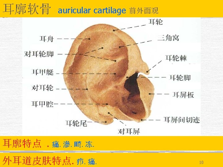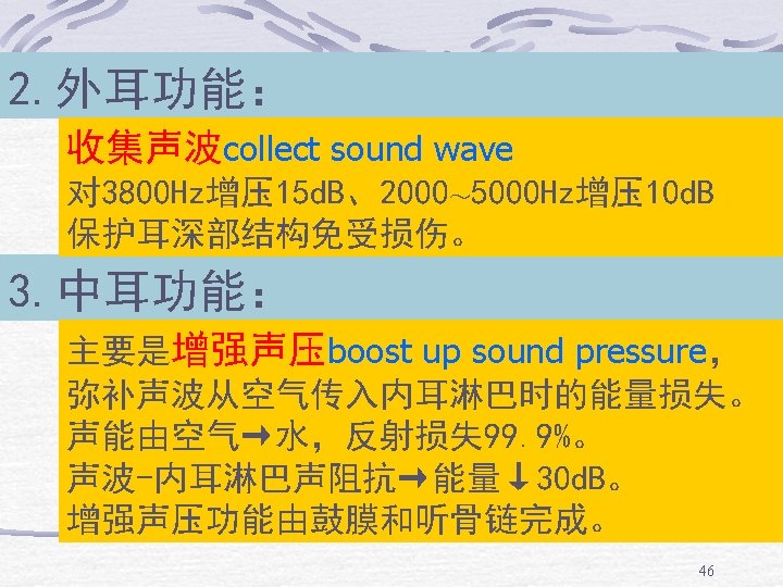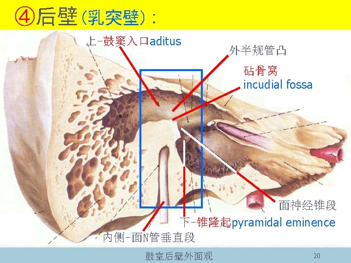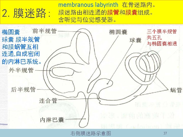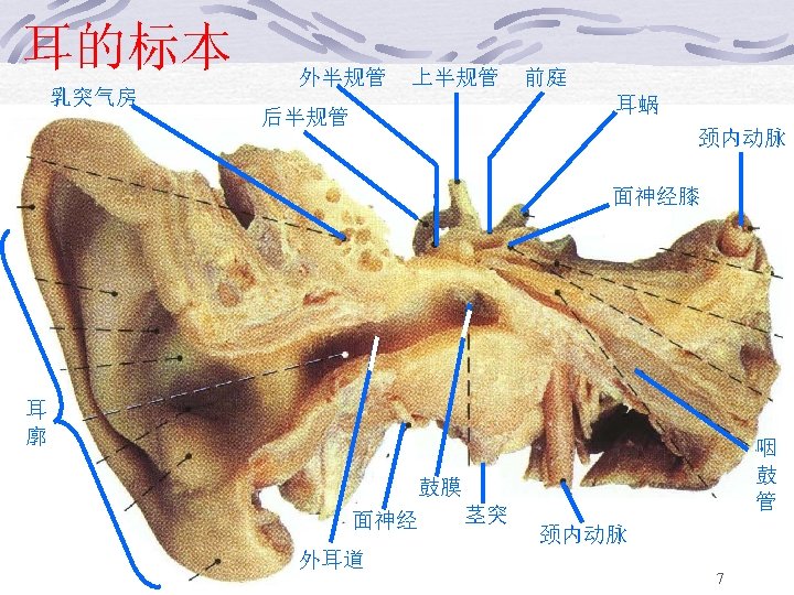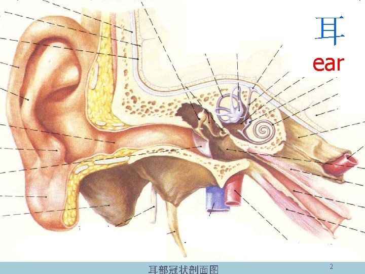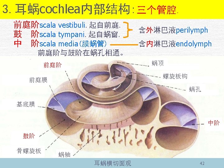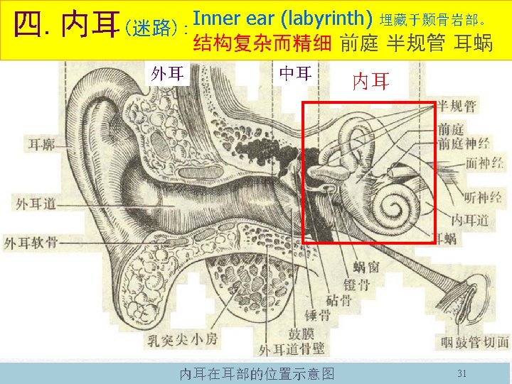 1. 鼓室: Tympanic cavity 上下径15 mm 前后径13 mm 容 积 1~ 2 ml 分三部: 上鼓室 epitympanum 内外径6 mm. 中鼓室 mesotympanum 内外径2 mm. 下鼓室 hypotympanum 内外径4 mm. 鼓室冠状剖面图 12