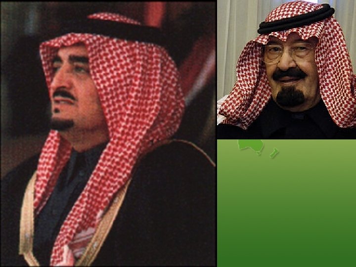 History, People, and Government • King Abdullah has been ruler of Saudi Arabia since 2005 (King Fahd before him) o He is a member of the Saudi royal family o This family has been important for hundreds of years o Saudi Arabia is an absolute monarchy (king has full power to make all laws; is also the religious leader)