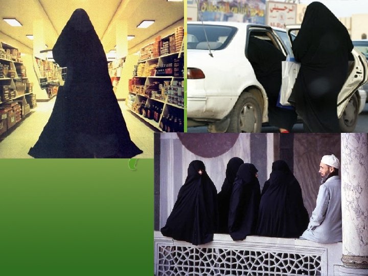 Religion and Women • There are strict Islamic laws for women 1. Girls must study at separate schools 2. Women cannot drive cars, or ride bikes 3. When they leave the house it must be with a male family member 4. Women cannot work outside of their homes at jobs with men, only with women 5. They must be modest and wear clothes that cover their arms and legs; they must cover their hair and faces; so they wear a long black robe called an aba when they leave home, which covers their head, face, and body