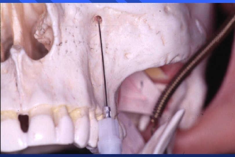 Indications Anesthesia of more than two maxillary teeth Supraperiosteal injections ineffective Inflammation/infection contraindicating local infiltration