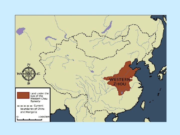 Zhou Dynasty • Zhou Dynasty (1045 – 256 B. C. E. ), named after the Zhou province, emerged in western Yellow River as a principality of the Shang Dynasty. • Founded by Ji Chang, son Ji Fa (aka King Wu) first Zhou emperor; claimed Mandate of Heaven. • Battle of Muye (1046 B. C. E. ), Zhou army attacks Shang capital; Di Xin sets his own palace on fire and is burned alive. • Dynasty divided into Western Zhou and Eastern Zhou dynasties.