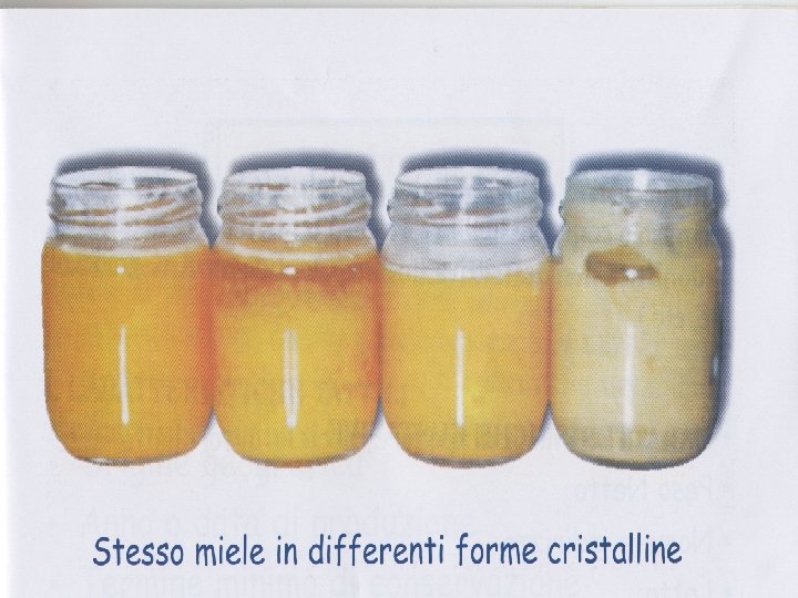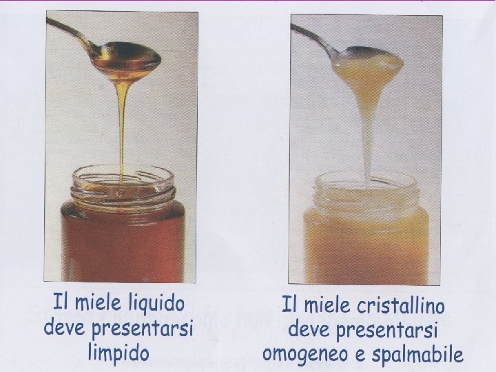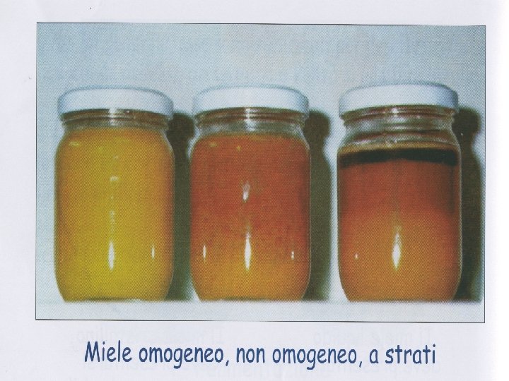 ASPETTO MIELE SEPARATO IN DUE STRATI : • PARTE CRISTALLINA IN BASSO • PARTE LIQUIDA SOPRA