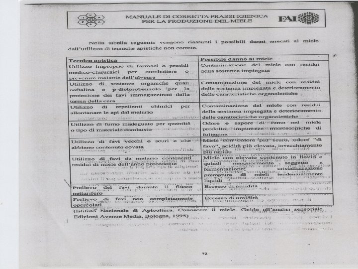 1. Pericolo microbiologico • Clostidium botulinum; 2. Pericolo di tipo fisico • Terra; • Polvere; • Sabbia; • Parti del corpo delle api; • Anelli e bracciali dell’ apicoltore; • Parti metalliche arrugginite di attrezzi e utensili; • Legno da parti dell’arnia;