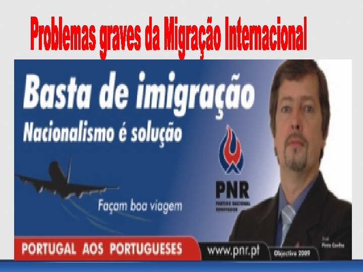 O estrangeiro é considerado uma ameaça econômica e cultural, tornando-se porem responsável pelas crises econômicas e sociais.