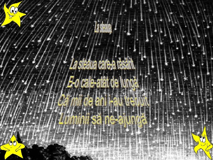 l “Stele rare din tărie cad ca picuri de argint, Şi seninul cer albastru mândru lacrimile-l prind; Noaptea stelelor, a lunei, a oglinzilor de râu Nu-i ca noaptea cea mocnită şi pustie din sicriu; ” Călin l “Deasupra casei tale ies Şi azi aceleaşi stele” Când amintirile. . . l “Pe bolta alburie o stea nu se arată, Departe doară luna cea galbenă - o pată” De câte ori, iubito. . . l “Mai mândră decât orice stea, Iubita mea, iubita mea! “ De ce nu-mi vii?