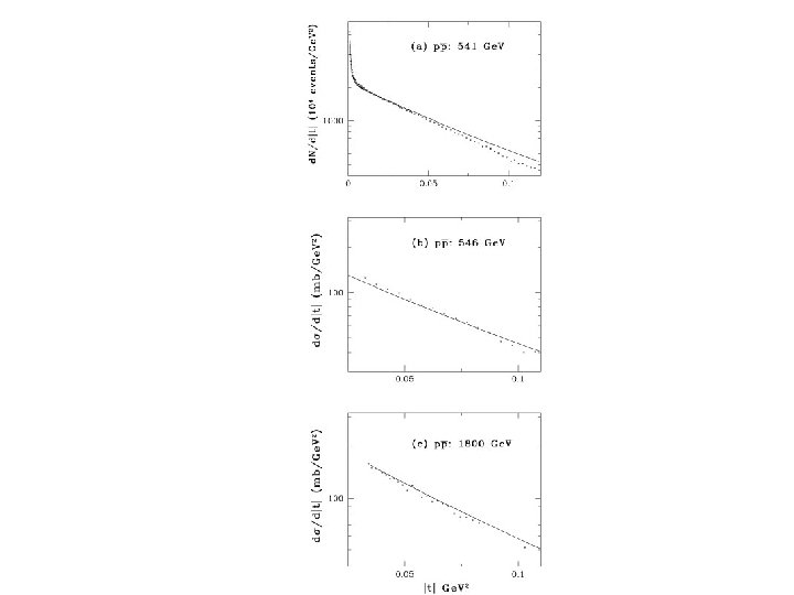 Procesy dwuciałowe i kwazidwuciałowe A+B C+D Klasyfikacja: 1. Elastyczne: A=C, B=D: dσ/dt=c(s)eb(s)t ; zależności od s słabe (asymptotycznie wzrost logarytmiczny). b rzędu 10 Ge. V-2. σel/σt ≈ 0. 2 – 0. 25 2. Dyfrakcyjne: C i/lub D jak wzbudzenia A i B (te same ładunki, dziwności itp. , spin wyższy, parzystość związana): prawie jak elastyczne, σd < σel. 3. Z wymianą ładunku (jak p-p p 0 n): c~s-1/2 4. Z wymianą dziwności (jak p-p K 0 L): c~s-1 5. Z wymianą liczby barionowej (jak p-p pp-): c~s-3/2 6. Z wymianą egzotyczną (nie M ani B, jak p-p p+D-): jeszcze szybszy spadek z energią