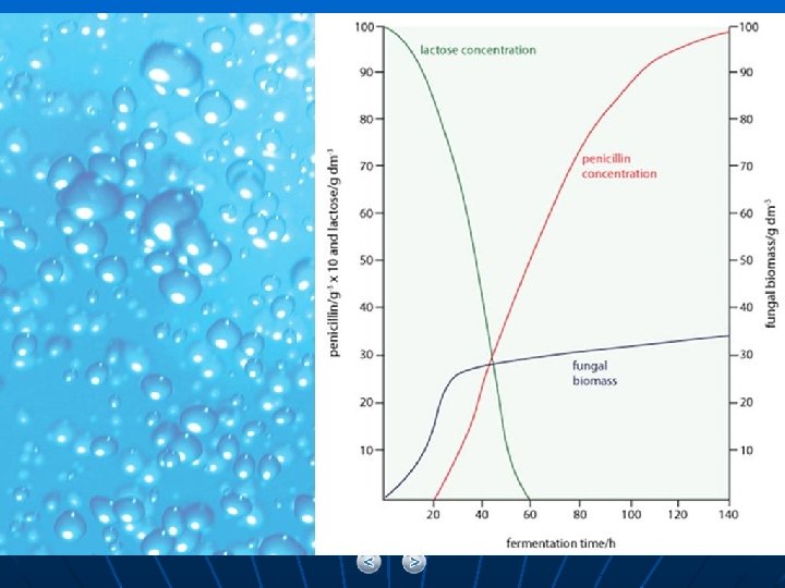 Temperature, oxygen concentration and p. H are controlled in the fermenter. Large paddles swirl the medium around to keep everything well mixed. Over the next 140 hours the fungus will grow and start to produce penicillin.