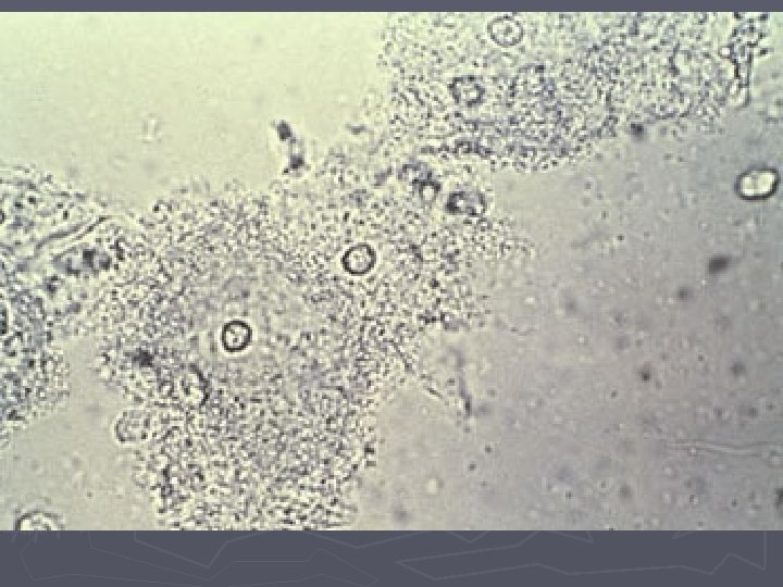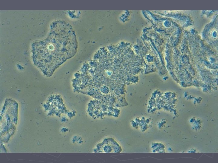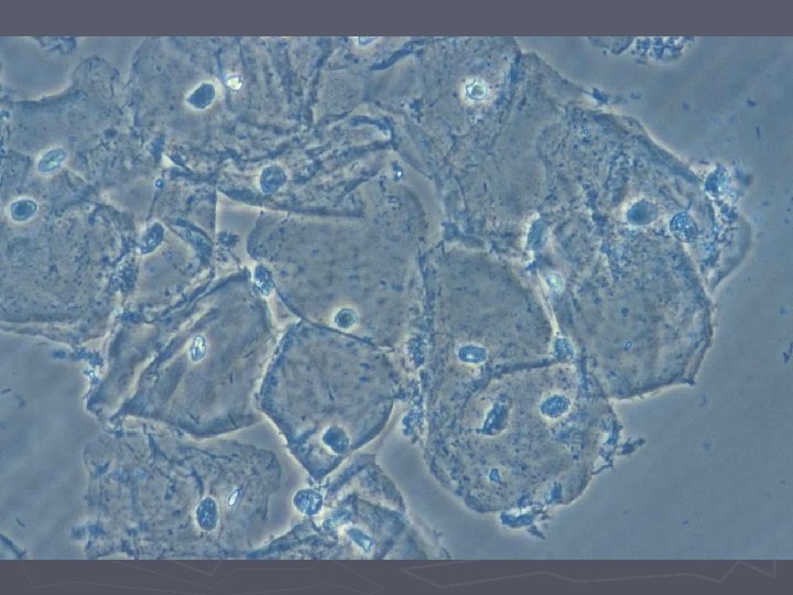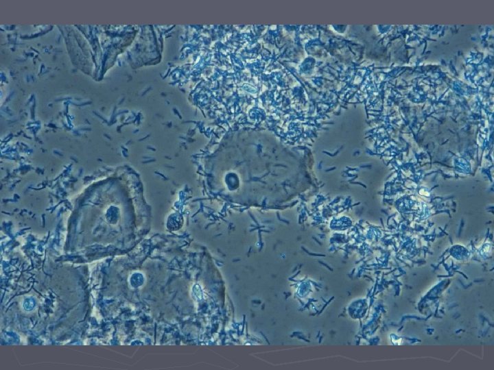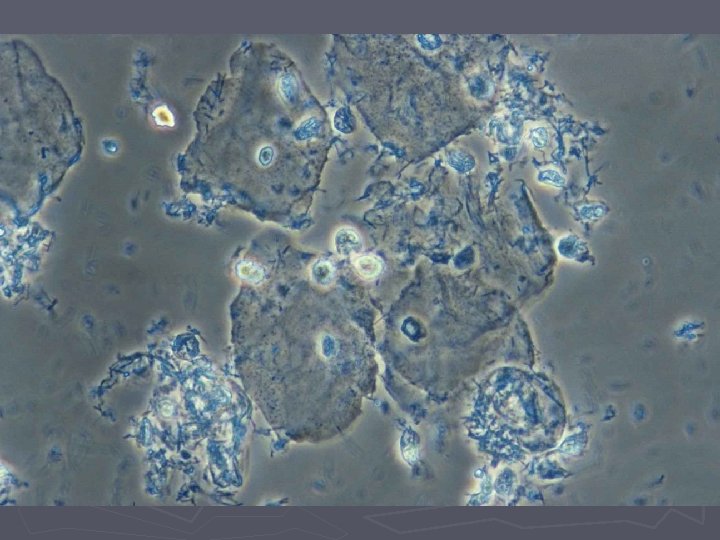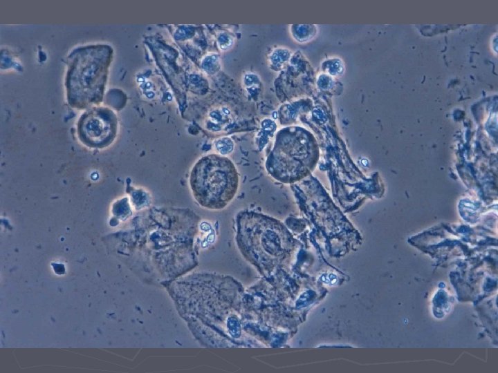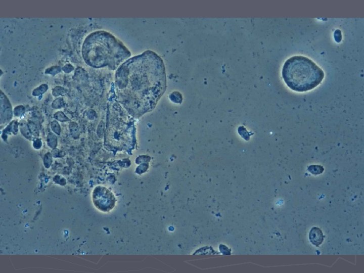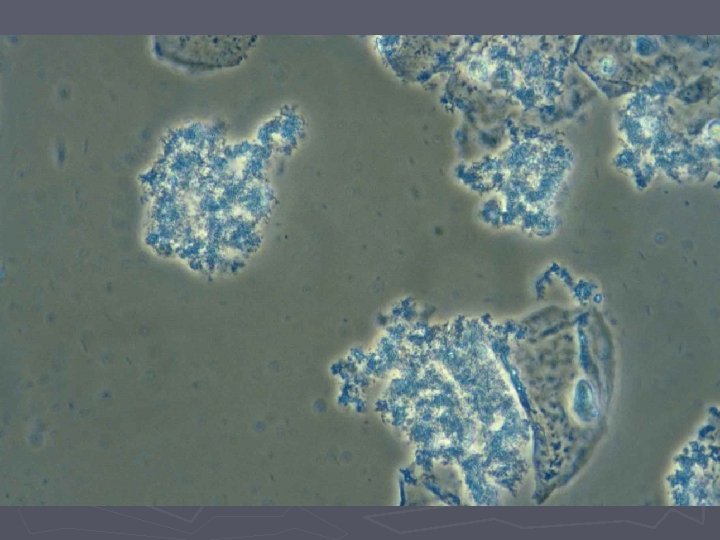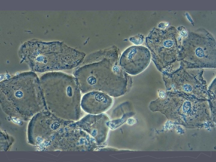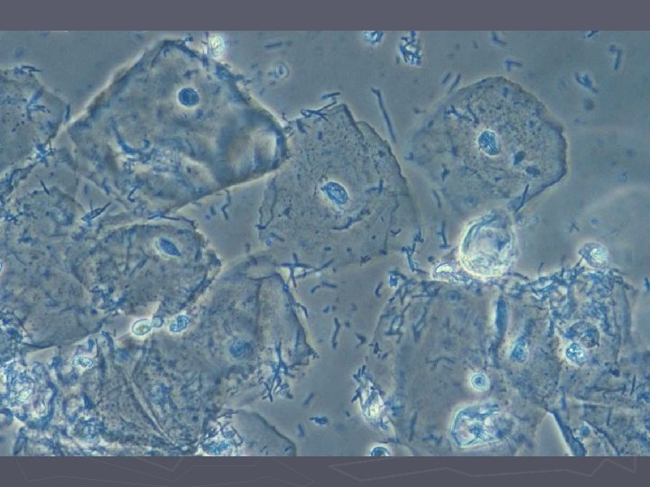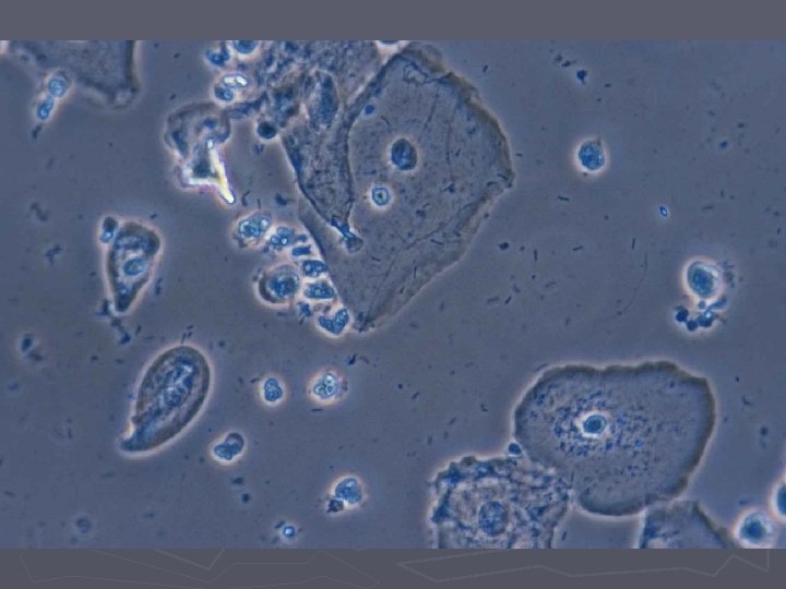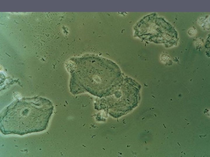 Bakteriel vaginose = BV ► Diagnose (Amsels kriterier) § Tyndtflydende homogen konsistens af flour § Positiv amintest (KOH) § Clue-cells ved mikroskopi § p. H>4, 5 i vaginalsekretet ► 3 ud af 4 kriterier skal være opfyldt