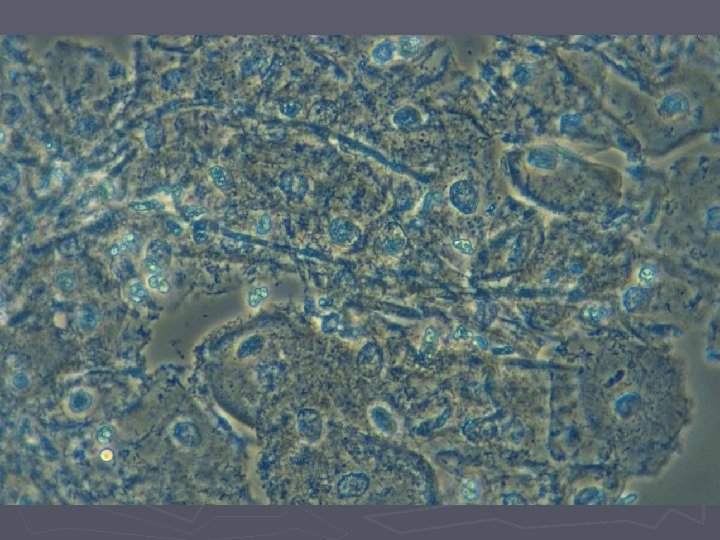 Candida ► Næsthyppigste vaginale infektion ► 80% er Candida albicans ► Asymptomatiske tilfælde ses (vaginose) ► Oftest dog gener med kløe og svie (vaginitis) ► Ved mikroskopi ses sporer og hyfer (KOHpræparatet) ► 10% er Candida glabrata som kun danner sporer.