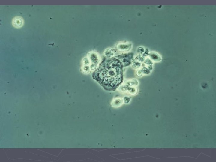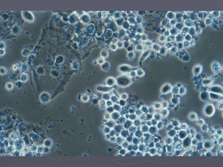 Trikomonas ► Sjælden i almen praksis ► Diagnosen: § Forekommer aldrig saprofytært § Giver ildelugtende grønligt fluor vaginalis § Giver svie, kløe og dyspareuni § Røde irriterede slimhinder (inflammation) § Rigeligt fluor ved GU § Typiske flagellater og mange leukocytter ved wet-smear § Positiv amintest