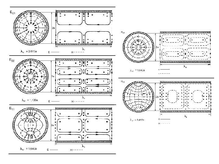 Vlnovod – slouží k přenosu vysokofrekvenční energie s malými ztrátami – ve VF a MW technice se používají převážně vícevidové vlnovody, tj. kovové trubky obdélníkového nebo kruhové průřezu, případně vlnovody H nebo PI – vede elmag. vlnění až od kritické frekvence, vlnění nižší frekvence do vlnovodu nevstoupí – ve vlnovodech se šíří vidy TE a TM, vid TEM ne – kritická frekvence a pásmo jednovidovosti závisí na rozměrech – materiály jsou mosaz, měď, hliník