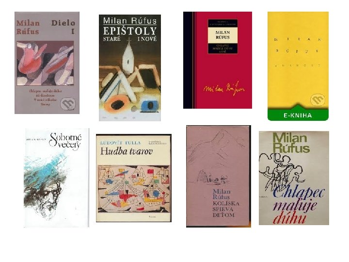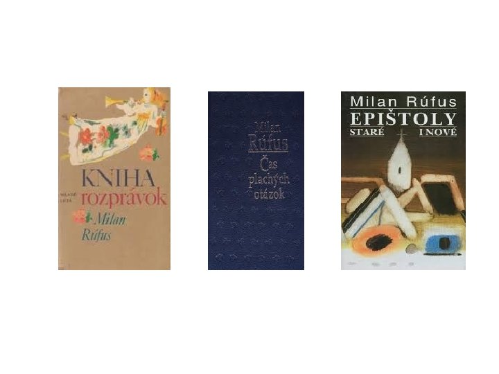 Milan Rúfus / 1928 - 2009/ • Spolu s M. Válkom najvýraznejšie osobnosti slov. lit. od polovice 50 -tych r. až po koniec 20. stor. • Jeho dielo je vrcholom poézie 20. stor. • Narodil sa na Liptove- Závažná Poruba, remeselnícka rodina • Po gymn. št. - Bratislava FF UK – slov. j, dejepis. • Vysokoškolský učiteľ, prednášal aj v Neapoli • Redaktor mesačníka Romboid • Koníček- výtvarné umenie • Osobitné lásky – B. Pasternak a návraty do Liptova.